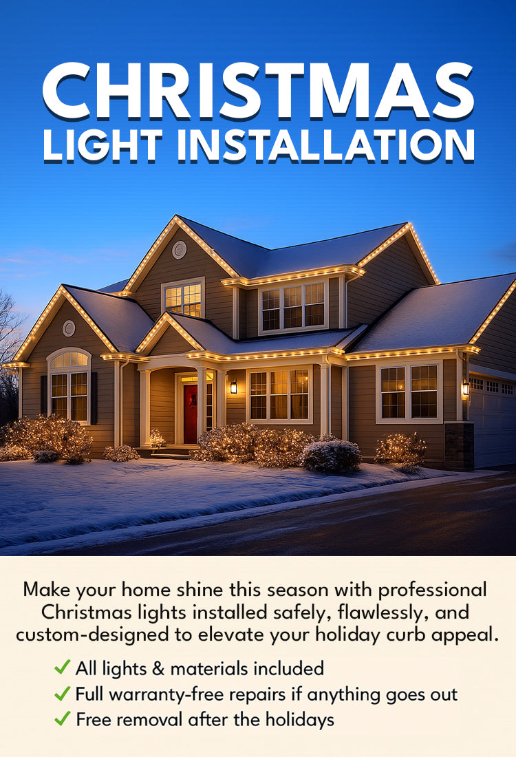Transform your home into a winter wonderland with our stunning cascading light displays, designed to add sparkle and motion to your rooflines, trees, and outdoor spaces. From soft white shimmer to vibrant festive hues, every light drop is tailored to your holiday vision. Our glowing designs create a dazzling effect that captures the magic of the season.